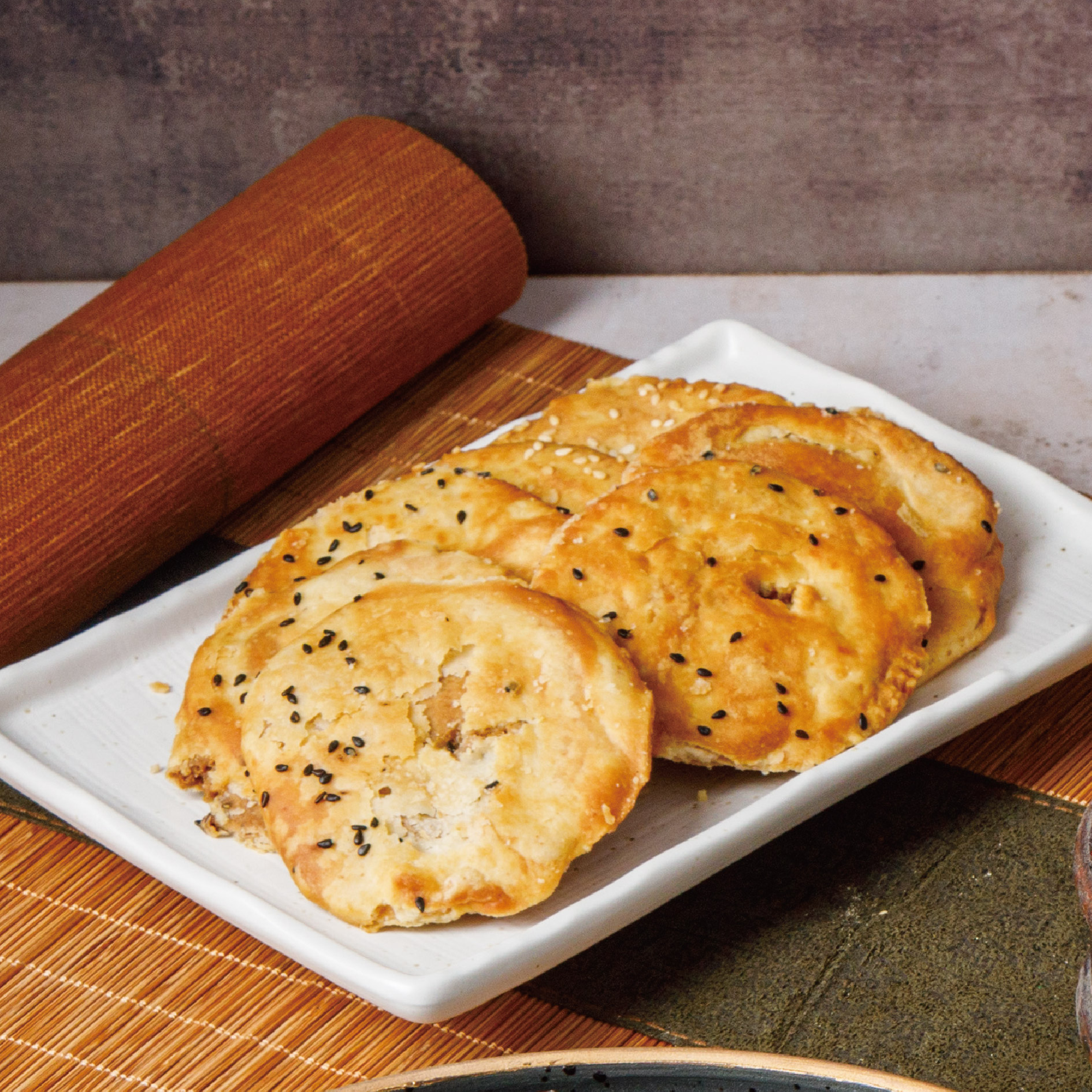 成份:無漂白麵粉、非基改芥花油、青蔥、芝麻、有機鹽、小蘇打、肉桂、八角、丁香、小茴香、花椒、L-麩酸鈉、水果發酵液(鳳梨、黑糖)